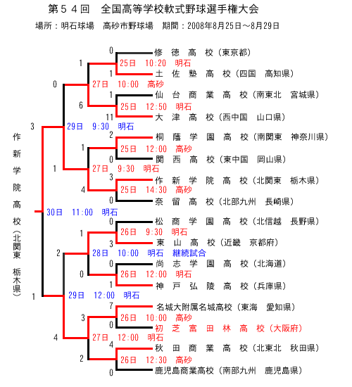 8/27 東山高校 対 神戸弘陵高校 の継続試合に伴う日程変更は、青色にて表示