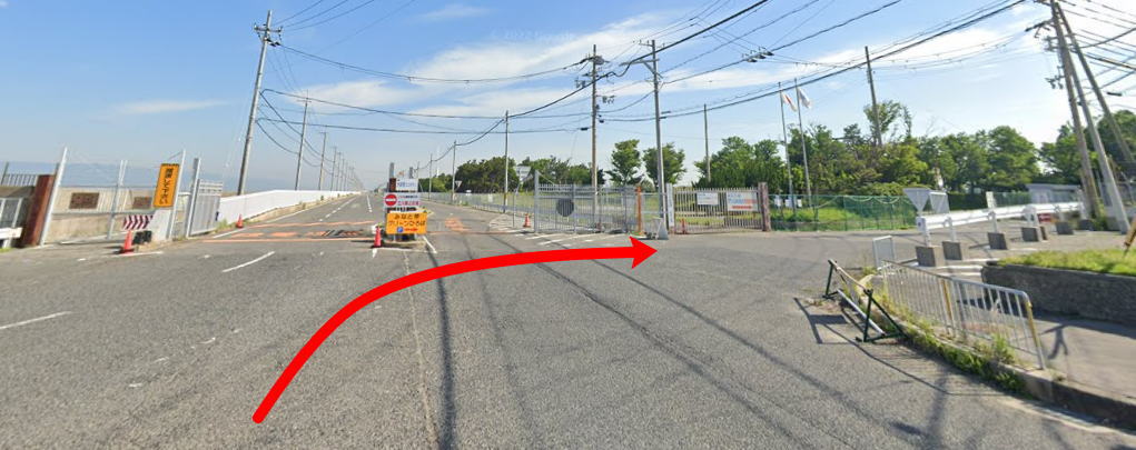 | 「グリーンひろば」の直前に【進入禁止】の柵があります。 この先は堺市から大阪府の土地に管轄が変わるため、立ち入り禁止となっています。 関係者のみ通行できるように柵が開いていることもありますが、自転車も含めて進入できません。 手前で右折するとすぐ左手に「グリーンひろば」に入る駐車場の入り口がありますので、そちらに駐車して、そこからは徒歩で移動してください。 |