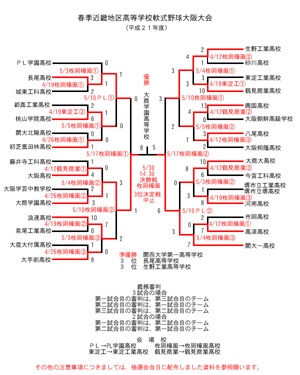 平成21年度 春季近畿地区高等学校軟式野球大阪大会