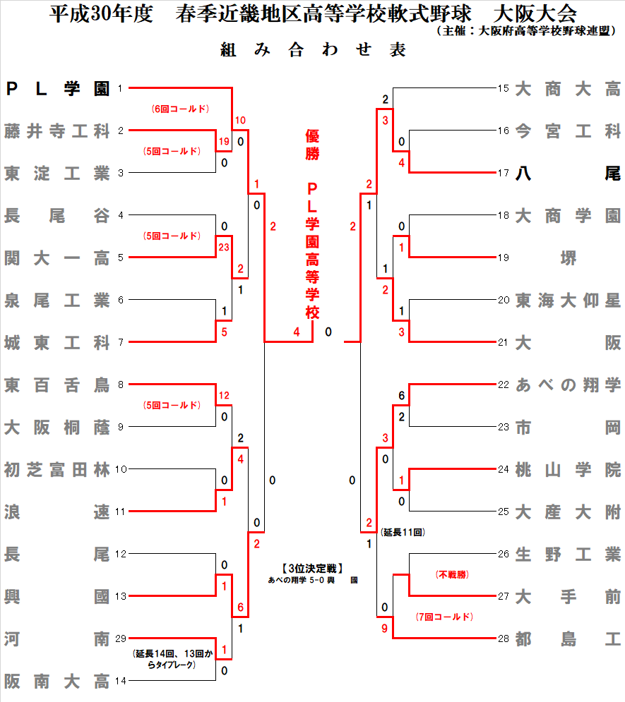 平成30年度 春季近畿地区高等学校軟式野球大阪大会